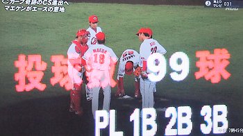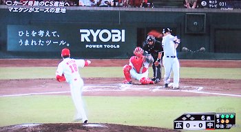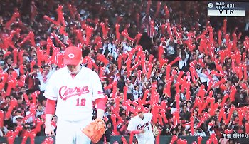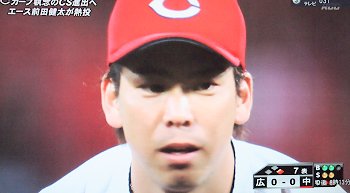 前田健太投手の力投で、両チームとも7回までは無得点。そして、8回から大瀬良投手が継投です。