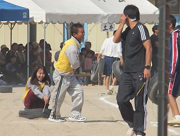 女性が乗りましたタイヤを男性が引っ張りますのは、見ていまして実に楽しいですねぇ(^_^)v