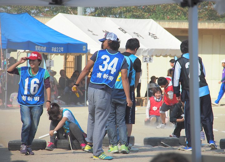 毎年似たようなと言うか同じような競技種目の学区民運動会ではありますけど、何度拝見しましても楽しいのがこの「ねるとんリレー」なんです。