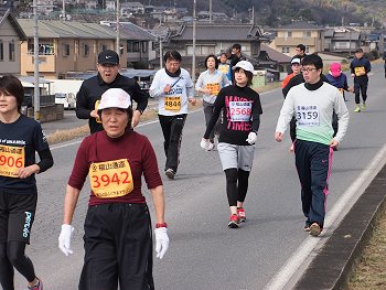 【ハーフマラソン】一般女子34歳以下 桑谷奈緒美(京都市)1時間37分00秒▽同男子 土久岡陽祐(福山市)1時間5分50秒▽一般女子35歳以上 殿山恭代(同)1時間32分39秒▽同男子 新田恒士武(岡山県)1時間15分20秒▽日本陸連登録女子 中村朱希(同)1時間38分59秒▽同男子 石川雅之(広島市安佐南区)1時間8分25秒