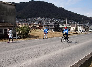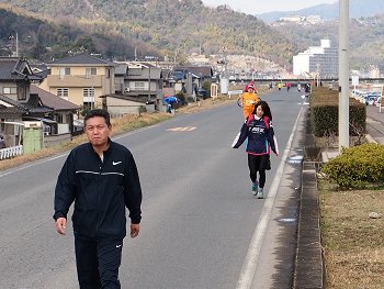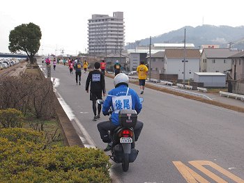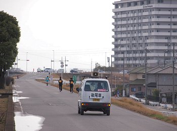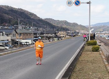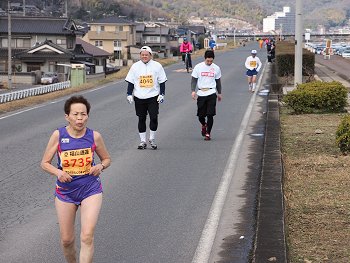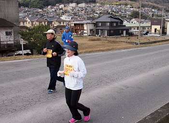 ご年配の女性ランナーsanが通過して行かれますと、いよいよ最後尾の選手が近付いて来られました。