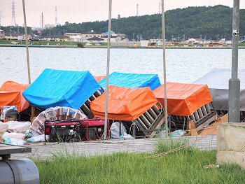 いつでしたか嫁さんが言っておりましたけど、「ゴンchanと散歩していたら、一週間も前なのにブルーシートが随分敷かれてた…」と。