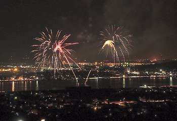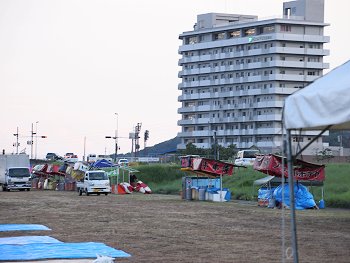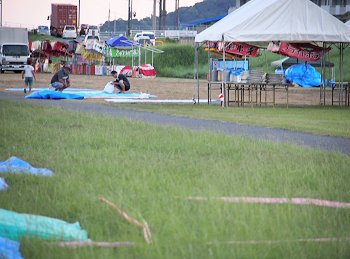 ご先祖様へのお詣り後眼下を見下ろしますと、すっかり花火打ち上げの準備も整っていますようですねぇ〜