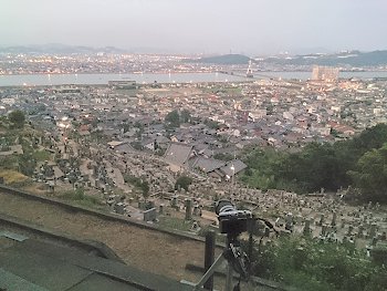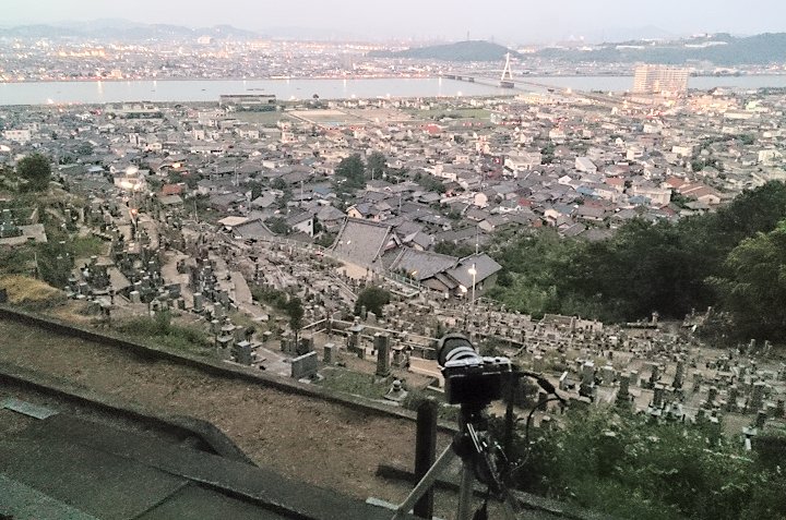 墓地から夕闇迫ります眼下の眺望を楽しんではおりましても、花火の打ち上げ時間の到来は、待つ身には結構長く感じられるもののようです(^.-)☆