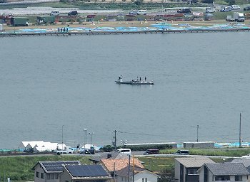 どなたか言っておられました。今まで両端の台船間の距離は300mでしたが、今回は150m延ばして450mにしましたとか(^-^)