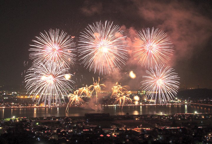 福山市は、GONsanが子供の頃から花火の打ち上げは京都市の噛友銃砲火薬店sanに依頼しておられます。