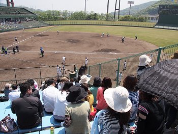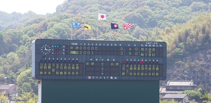 拮抗した好ゲームの展開を予想しまして福山市民球場にヤッて来ましたけど、う〜ん、一方的な試合展開には少々意外でありました(^-^)