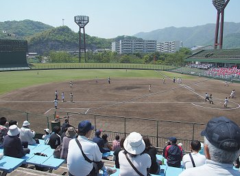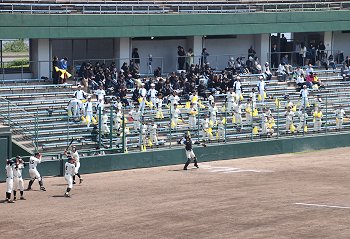 本大会で優勝しますと、5/30から倉敷マスカットスタジアムで開幕します春期中国地区大会に出場が可能です。