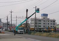 が、電柱を差し替えられますものとばかり思っておりましたら、なんと、投光器を設置しておられました(^-^)