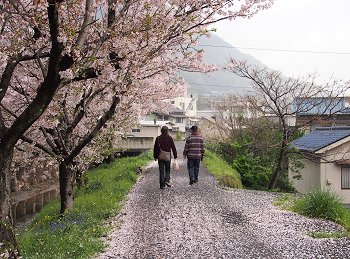 GONsan同様に、ノンビリと、散り始めました桜を楽しんでおられます二組のご夫婦を、少し離れた地点からパチリとなりました(^_^)v