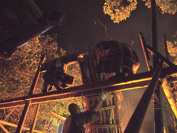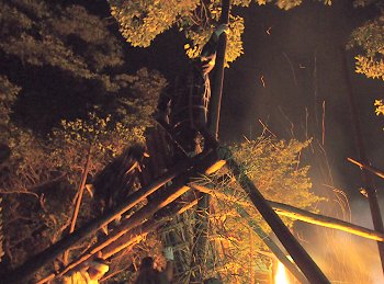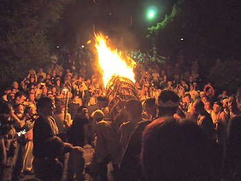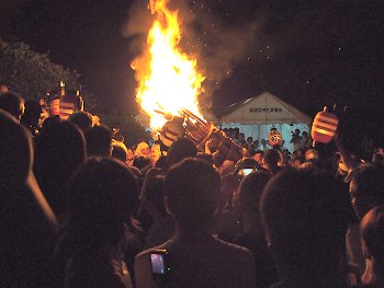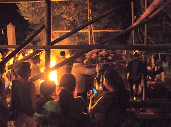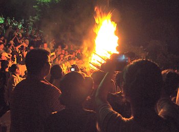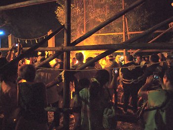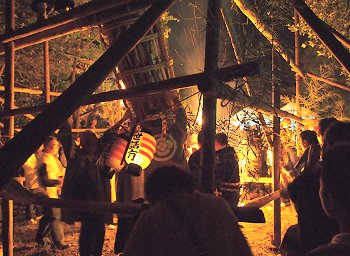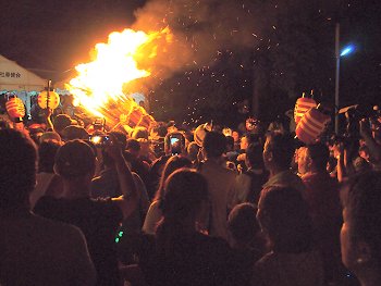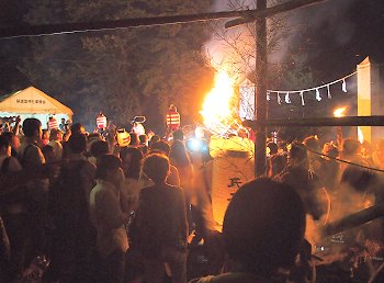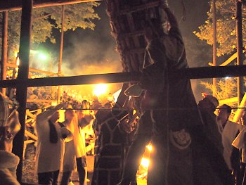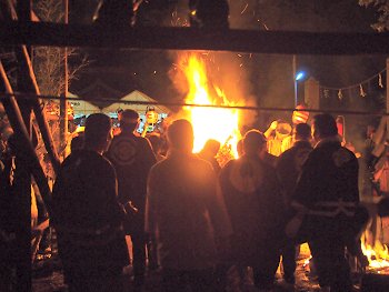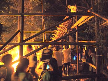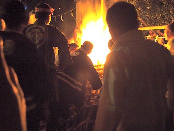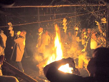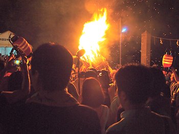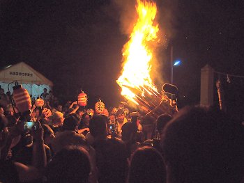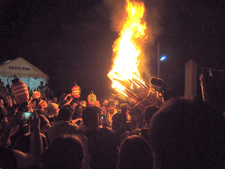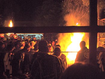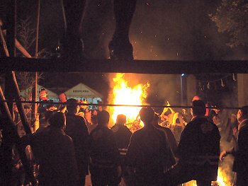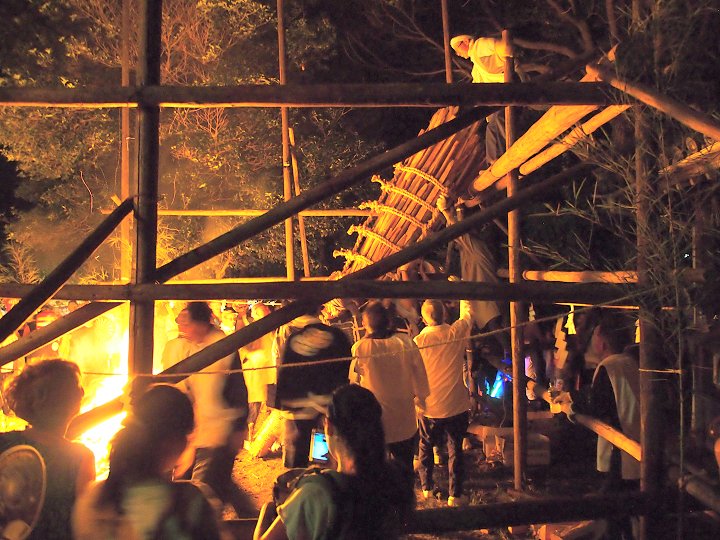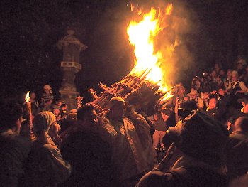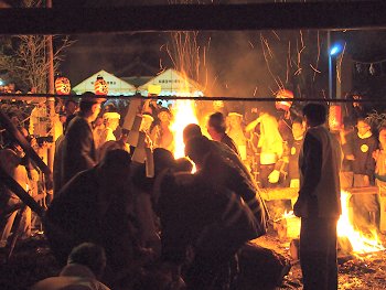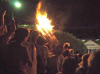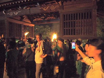 沼名前神社に到着しますと、丁度、三体目の大松明に火が付けられようとしています場面でありました。