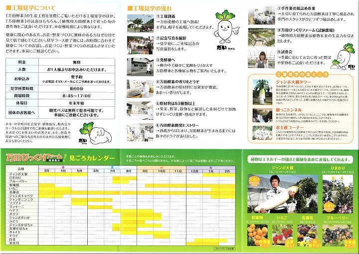 農場「万田びっくりファーム」を併設、農業用万田酵素を用いて巨大な農産物を育てている。