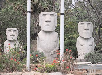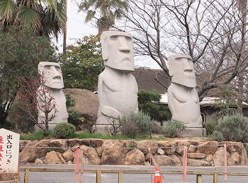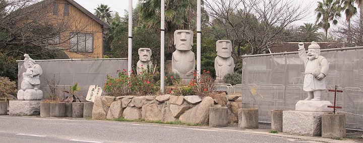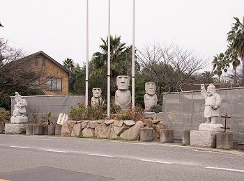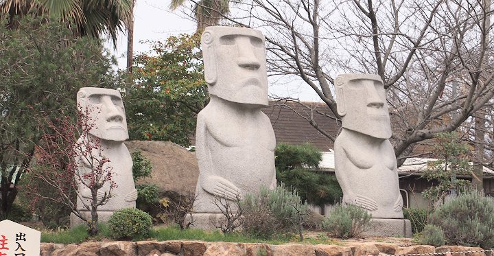 因島鉄工業団を後にしスタート地点のアメニティ公園にと向かっておりまして、いよいよゴールも目前となりました地点にモアイ像が3体存在です (^.-)☆