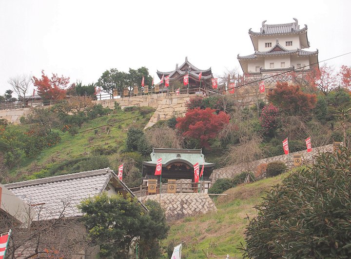 因島には当時の村上水軍の歴史を伝える水軍城があります。実際の水軍城は岬などに築かれていたようですが、村上水軍の菩提寺のある金蓮寺近くの高台に観光施設として築かれたものです。