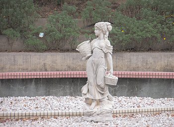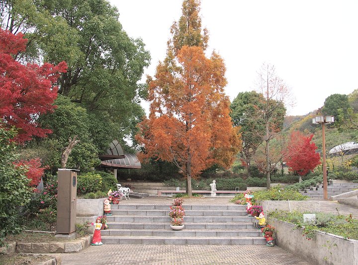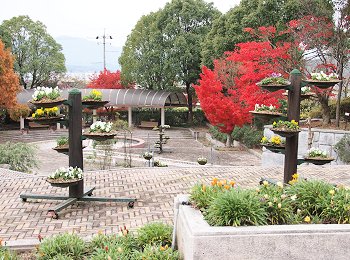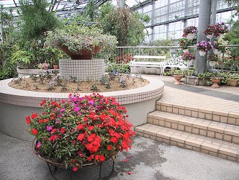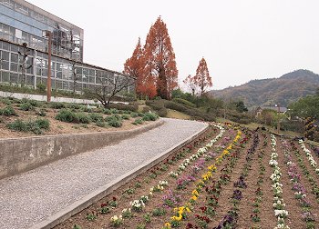 入場門を入るとまず広大な上り坂の芝生と大花壇があり、一番奥に温室がある。大花壇では四季折々の花(サルビア、マリーゴールド、ベゴニアやパンジーなど)が植えられ、階段花壇にはおよそ3万本のマリーゴールドが植えられている。温室にはフラワートンネルと呼ばれる花の壁や亜熱帯性植物や食虫植物などが展示されている。