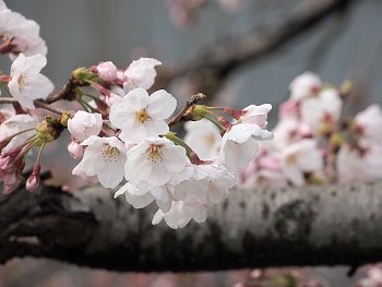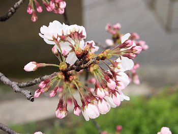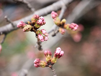 一番南側の桜はまだ蕾状態で、北側の桜が開花ですから少々不思議。