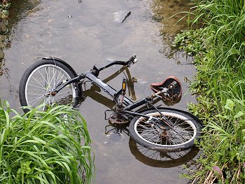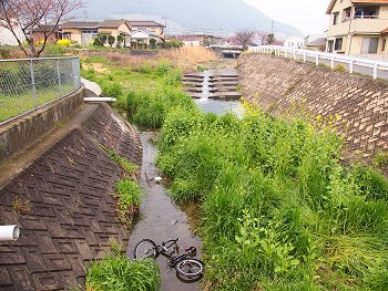 相変わらず悪い人がおりますねぇ〜どなたかの自転車を無断で借用し、用済み後には水呑川に放置と言うか捨てましたのでしょうねぇ〜