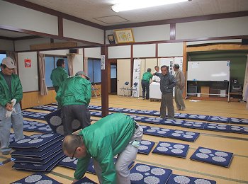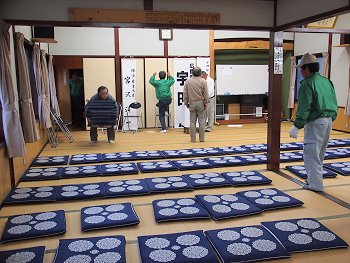 当日はあいにくの降雨でしたが、1時間半ばかり前頃より会場作り開始。