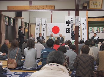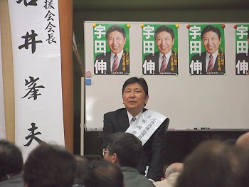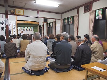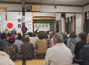 これは、4/4(土)の坪生葉座集会所での宇田伸県議の個人演説会の様子です(^-^)