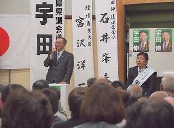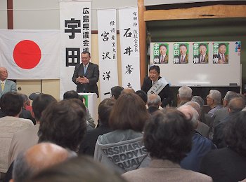 何かとご多忙の中、経済産業大臣・宮沢洋一代議士も応援弁士としてご来訪。