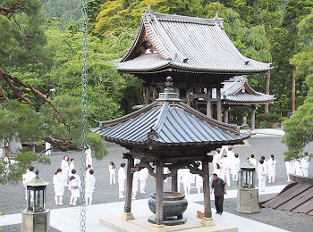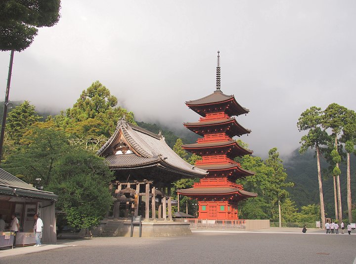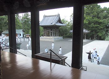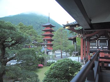 朝のお勤めを終え本堂の外に出まして廻りを見渡しますと、山々はモヤに囲まれておりました。