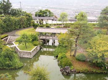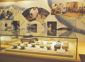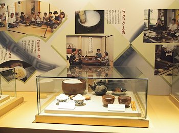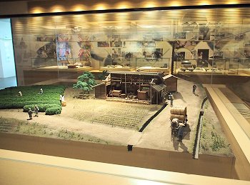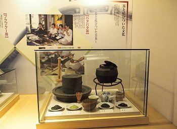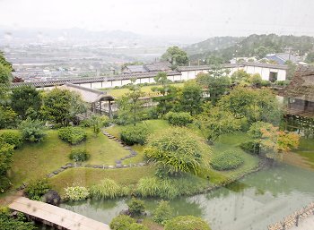 お茶の郷博物館内の展示物を楽しんで廻っておりまして、時折り窓の外に眼を向けますと、眼下には庭園。
