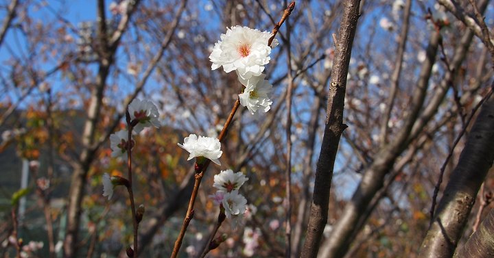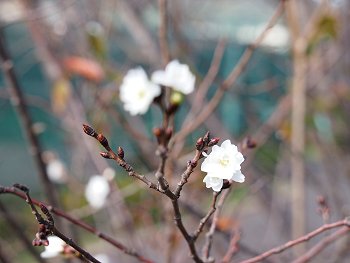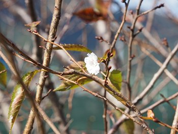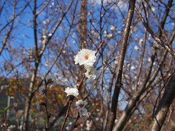 ジュウガツザクラは仲々面白い花で、まず11月中頃に満開となりまして、その後一部散りますけど、5分咲き程度の状態が3月まで続きます。