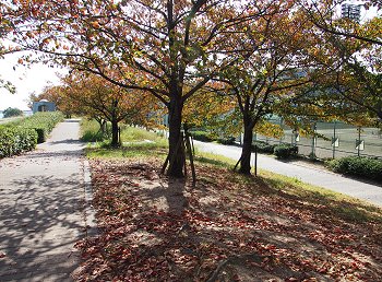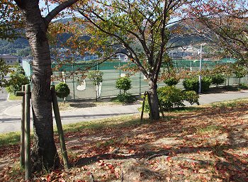 ノンビリと歩いています積もりでも、気が付きますとテニスコート横に(^.-)☆