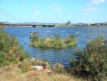 芦田川大橋下から上流方向に眼を向けますと、河川敷には多数の車が駐車、そしてテントも張られておりました(^.-)☆