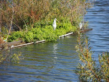 川面に眼を向けますと、中州では二羽のシラサギがノンビリと日向ぼっこ(^-^)