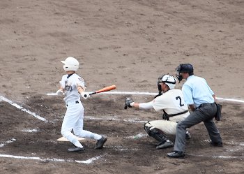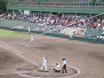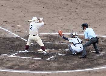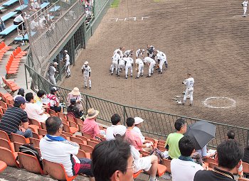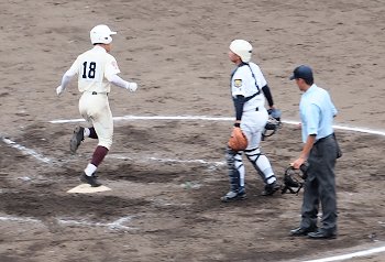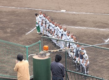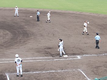 そして、7回表に府中高校が1点返しました。うん、うん、これから面白い展開に…と期待しておりましたら、その裏にスグ修道が1点獲得し 「3×1」。