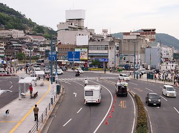 尾道駅を出ますと、早速、陸橋上から尾道駅前周辺の光景をパチリとなりました。