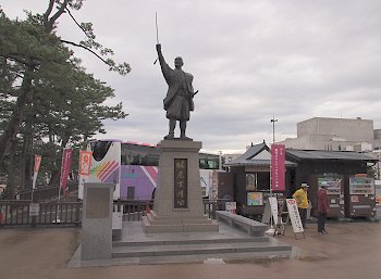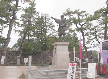 松江城駐車場に到着しますと、まず迎えてくれましたのが「堀尾吉晴」公の像でありました(^.-)☆