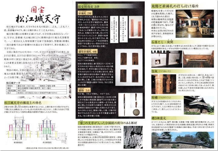 2015年(平成27年)5月15日、文化審議会が松江城天守の国宝指定について文部科学大臣に答申。同年7月8日の官報告示をもって国宝に指定された。