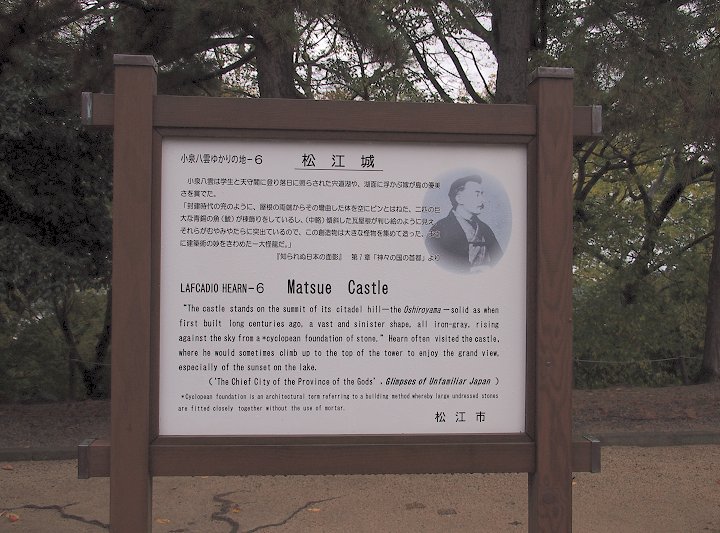 天守台下の北東部石垣が何度も崩落するため困っていたところ、堀尾吉晴の旧友という虚無僧が現れて、崩落部分を掘らせたところ槍の刺さった髑髏が出てきたので虚無僧が祈祷したが、まだ危ういところがあるというと虚無僧は「祈祷では無理だ。」というのである。どうすればいいのかたずねると、「私の息子を仕官させてくるのであれば、私が人柱になろう。」というので、虚無僧に人柱になってもらい工事を再開させることができたが、堀尾家は普請の途中に2代忠晴で絶え改易となった、というものである。これには別に、虚無僧の尺八が聞こえてきたので捕まえて人柱にしたところ、尺八の音が聞こえるようになった、というものもある。