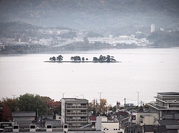 松江市都市計画部都市景観課職員によると、松江城から嫁ヶ島を眺める線上には高い建物を建ててはならないという不文律があるという。