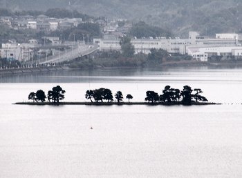 宍道湖の中には、ポツンと細長い島が存在です。「嫁ヶ島」と言う島のようですネ。