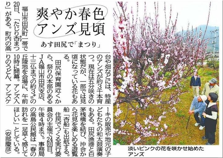 3/20(日)・福山市田尻町「たじり杏まつり」