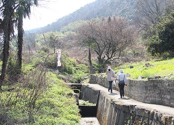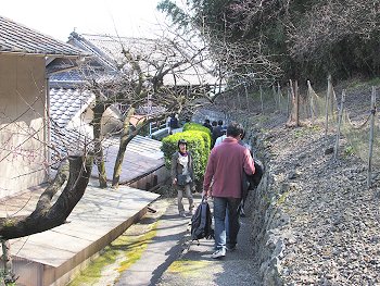 昨年までですと、いきなり山側に斜面を上がって行くのですけど、今回はそのまま直進で畑のあぜ道を進行です。
