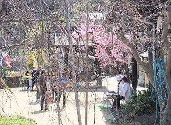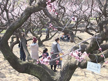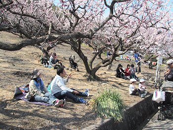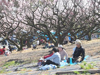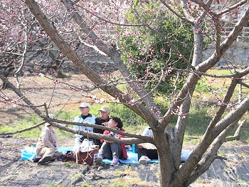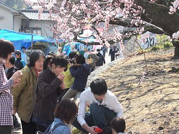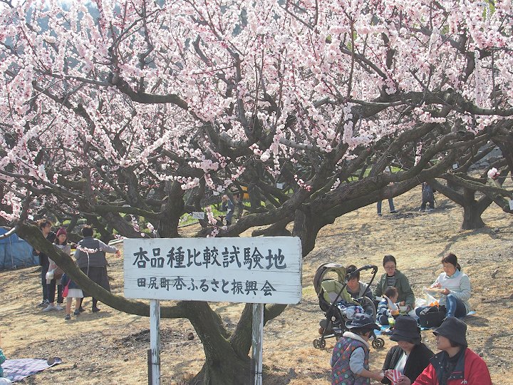 杏の木の下で楽しそうに過ごしておられます方々が…