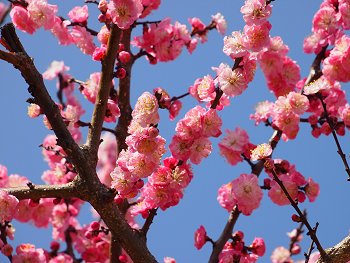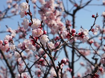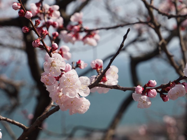 周遊コースに入りますと、案の定、杏は満開にはまだまだの状態です。