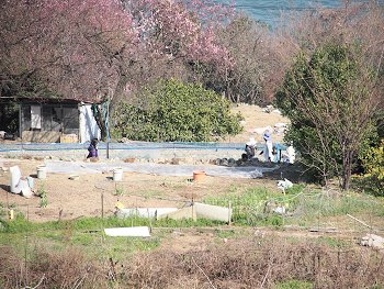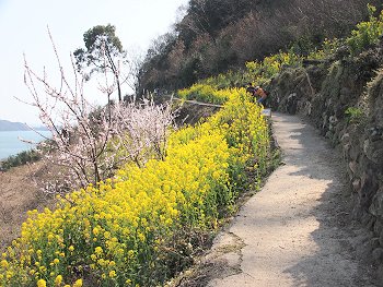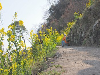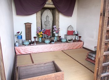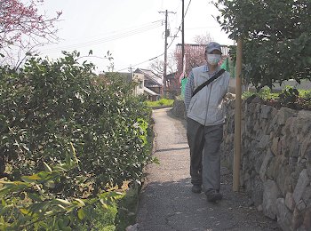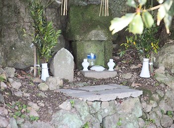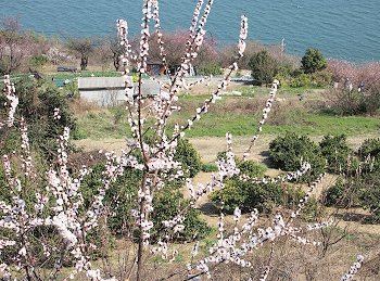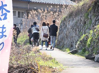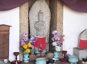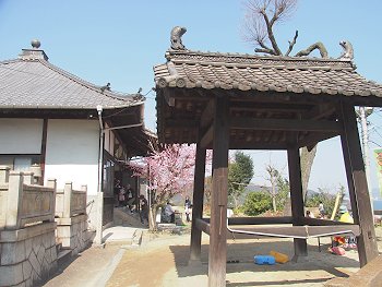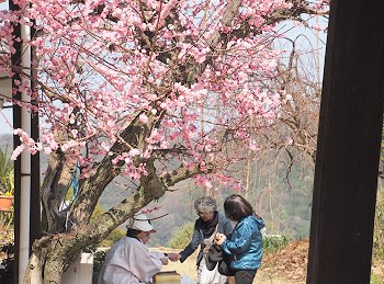 杏品種比較試験地を過ぎますと、円明寺・荒神社に参拝です。