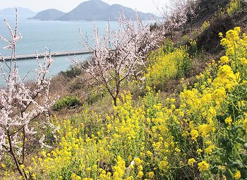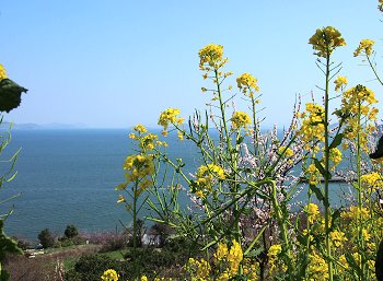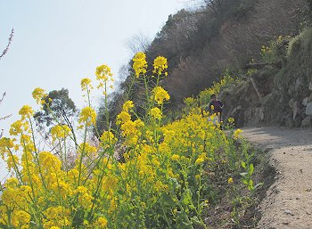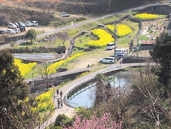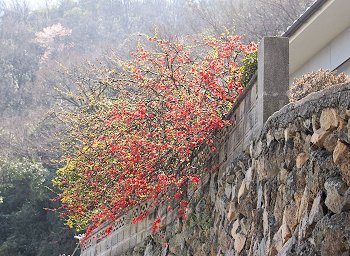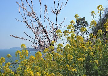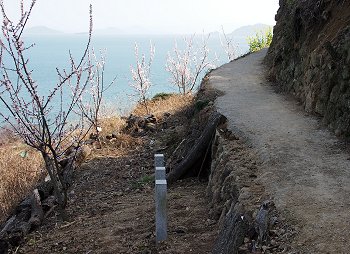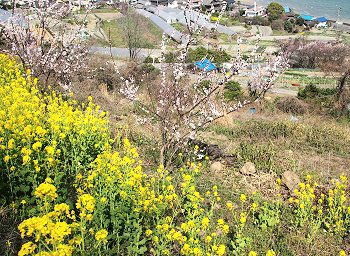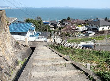 円明寺境内からの眺望は結構キレイ(^_^)v 円明寺・荒神社参道の石段脇には「田尻杏発祥の地」の石碑が(^.-)☆