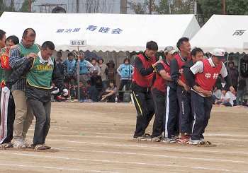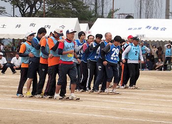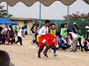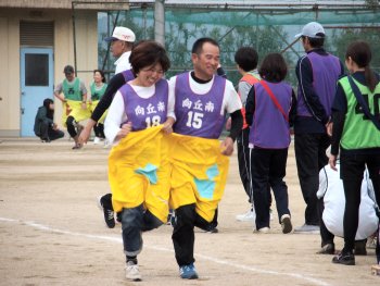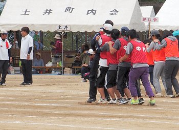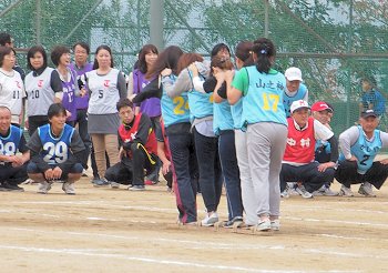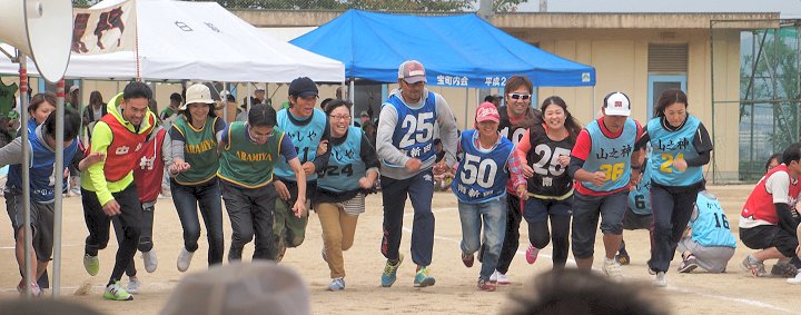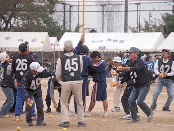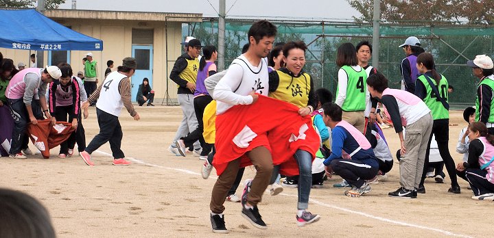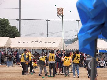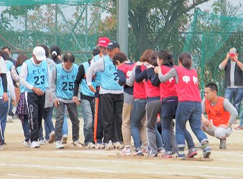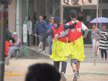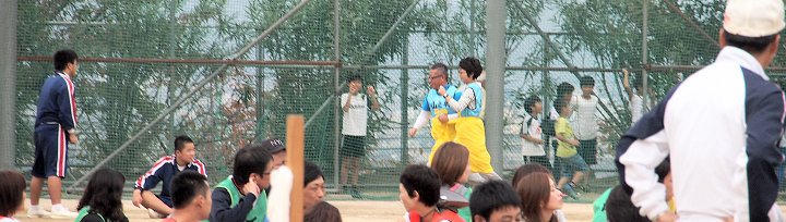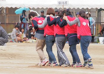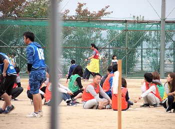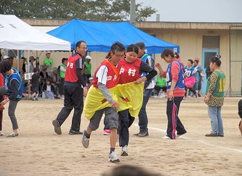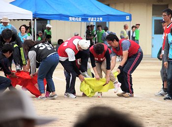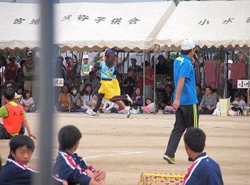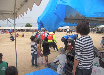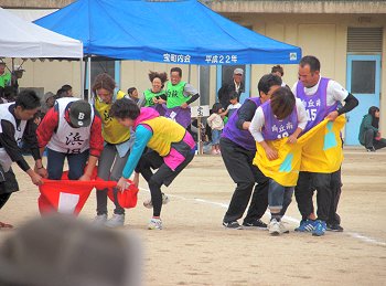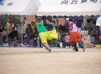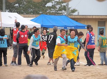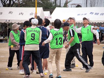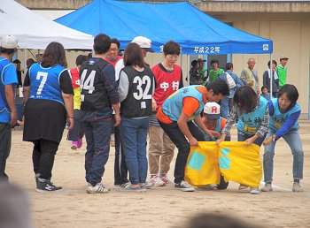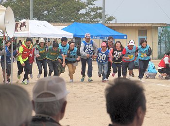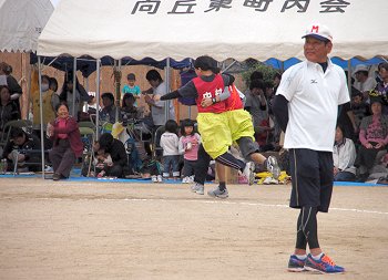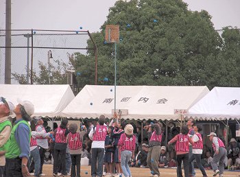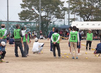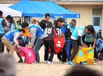 男女30〜50代の皆さんの「でかパンリレー」が終わりますと、いよいよGONsan達の玉入れ競技の出番です(^.-)☆
