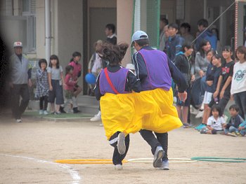 が、玉入れの籠に眼を向けますと笑ってしまいます(^-^)
