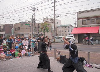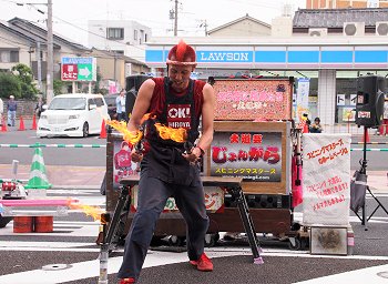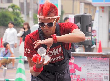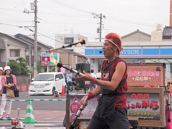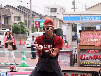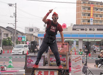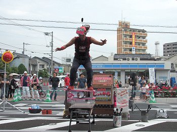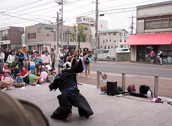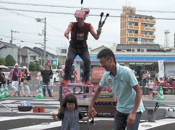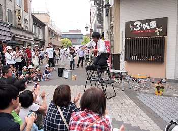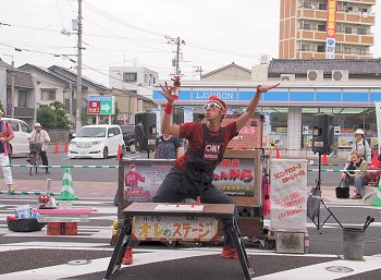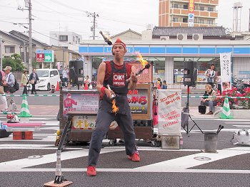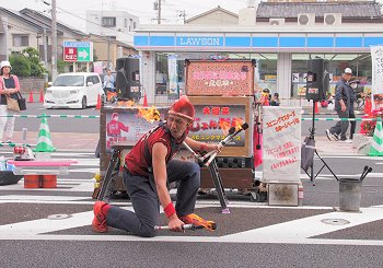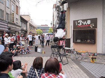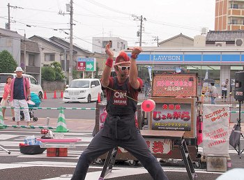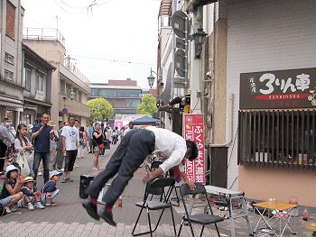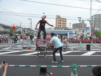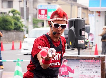ほどなくバラ公園目前までヤッて来ますと、車輌通行止めとなっておりますローズパレードコースでも、大道芸で盛り上がっておりました(^.-)☆