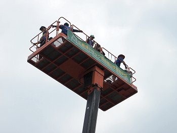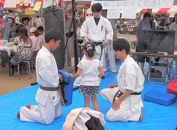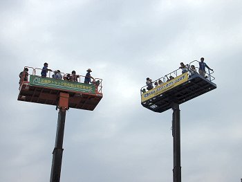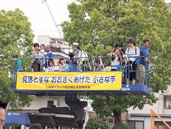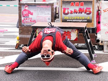 パレード開始30分前には完全撤収。近くのコインパーキングにスピニング号を駐車しておき、撤収したらすぐに積みこんで移動。次はエキシビジョン会場でステージショー。またまた特殊フィールドであります。