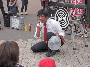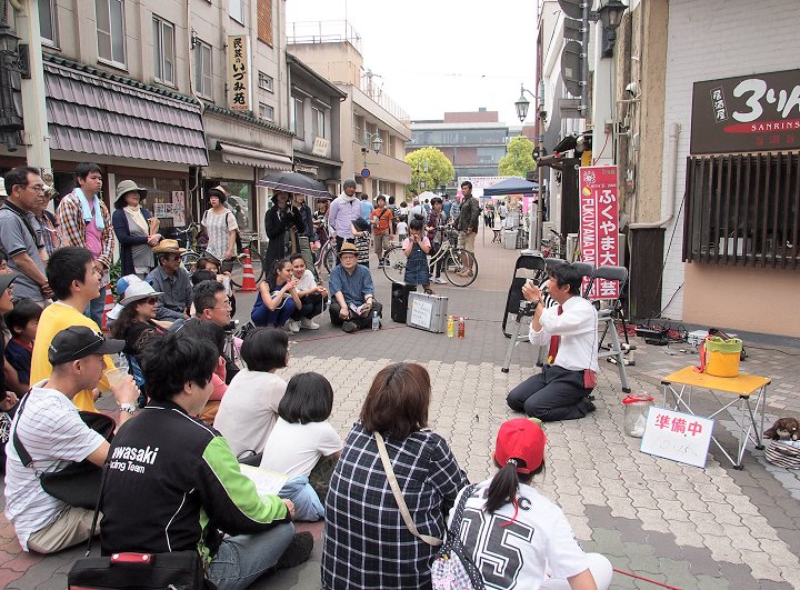 1つには、ふくやま大道芸のPRという役割もあるので、最後のご挨拶の時には「あちら、福山駅の方でも賑やかに大道芸のフェスティバルを開催しております!みなさん!遊びにいらしてください!」とアナウンスを忘れずに。