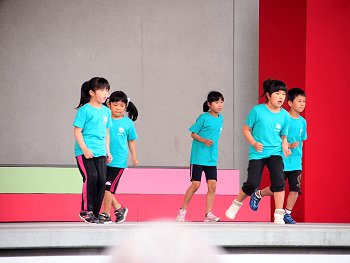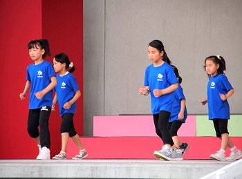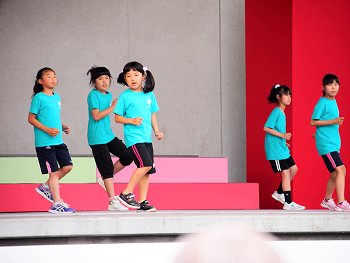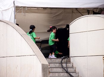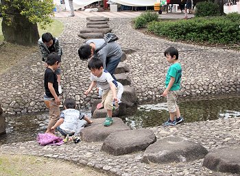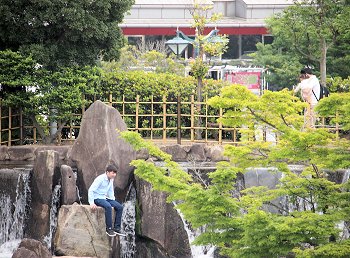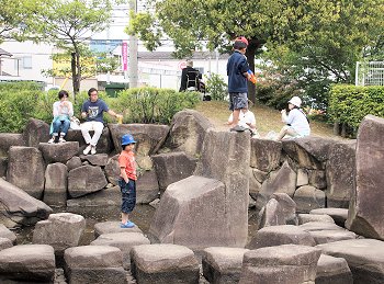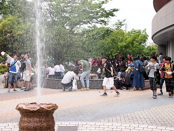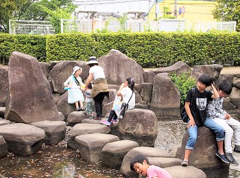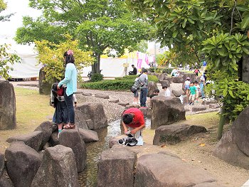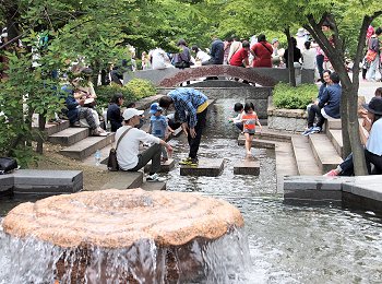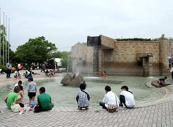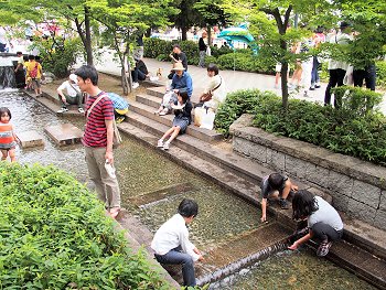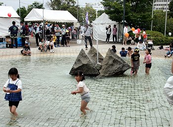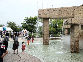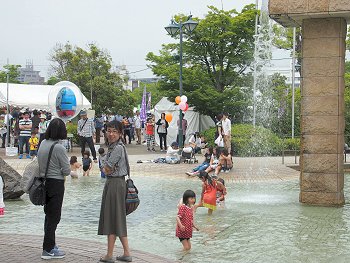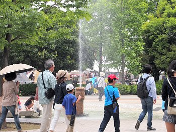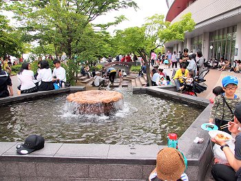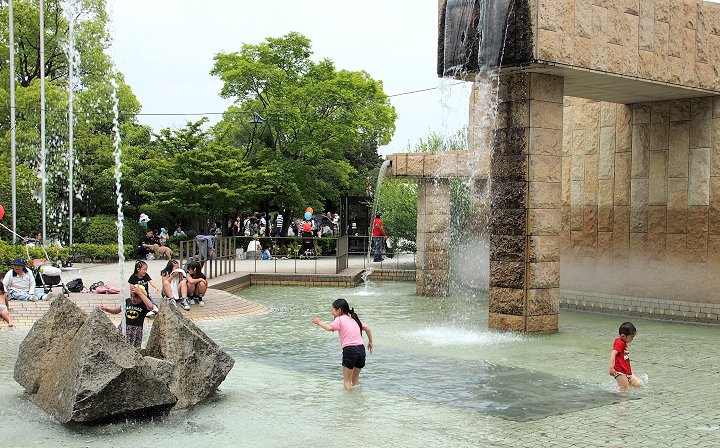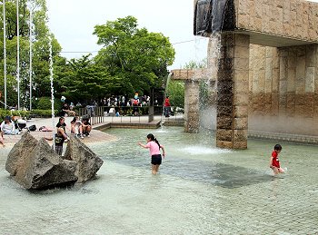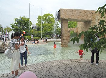出ました所に噴水が存在しますけど、ここではチビッコ達が水遊びの真っ最中。
