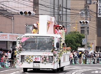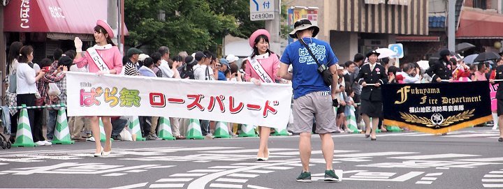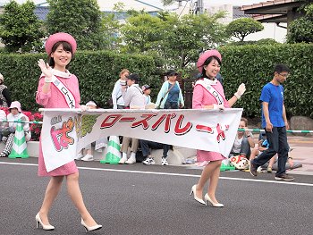 緑町公園のパラ花壇を楽しんでおりますと、いつの間にかローズパレードのスタート時間も近づいて来ました。